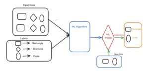 The model is trained on labeled data set , like predicting shapes(Rectangle,Circle,Diamond etc..) based on their labels